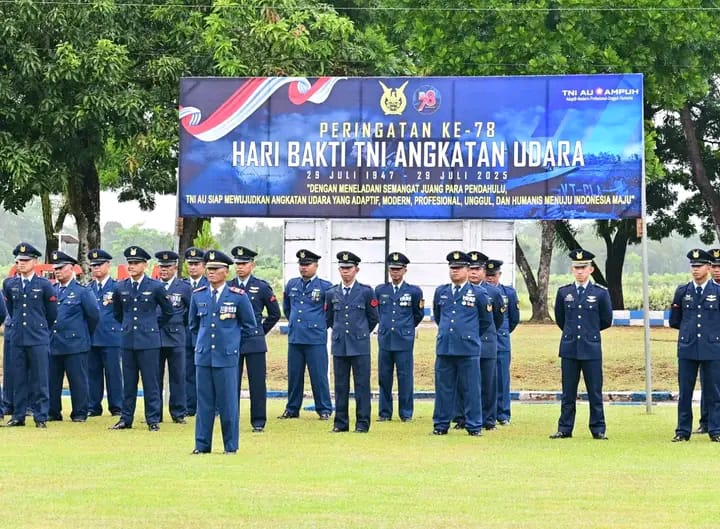 Selasa, 29 Juli 2025 Komandan Lanud Jenderal Besar Soedirman, Letkol Pnb Tatag Onne Setiawan, S.I.P., M.Han., memimpin upacara peringatan ke-78 Hari Bakti TNI Angkatan Udara, yang berlangsung khidmat di Lapangan Apel Mako Lanud J.B. Soedirman, Purbalingga.