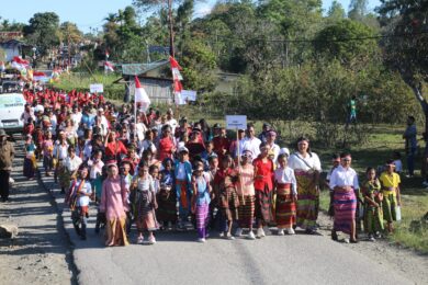 Meriahkan HUT RI Ke-80: Kirab Budaya dan Pengarakan Bendera Merah Putih di Miomaffo Barat