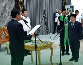 Bupati Batang Hari Muhammad Fadhil Arief Pelantikan Dan Pengambilan Sumpah/Janji Jabatan Penjabat Sekertaris Daerah Kabupaten Batang Hari Tahun 2025 Bertempat di Ruang Kaca Rumah Dinas Bupati Batang Hari. Rabu (06/08/2025)