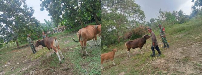 Dalam rangka mencegah penyebaran penyakit mulut dan kuku (PMK) pada hewan ternak, Kopda Fery Ramadhan bersama pemilik ternak, Bapak Indra, melaksanakan kegiatan pemantauan PMK di Desa Hutan Panjang, Kecamatan Rupat, Kabupaten Bengkalis, Selasa (12/8/2025) pukul 09.00 WIB hingga selesai.