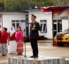 Polres Mahakam Ulu melaksanakan upacara pengibaran Bendera Merah Putih dalam rangka memperingati HUT ke-80 Kemerdekaan Republik Indonesia di halaman Mako Polres Mahakam Ulu, Minggu (17/8/2025) pukul 07.00 WITA.
