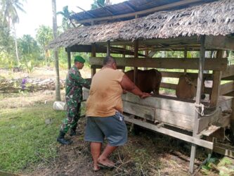 Dalam kegiatan tersebut, Koptu Jefri memeriksa kondisi fisik hewan ternak dan memberikan imbauan kepada pemilik ternak agar selalu menjaga kebersihan kandang serta memantau kondisi hewan secara rutin.