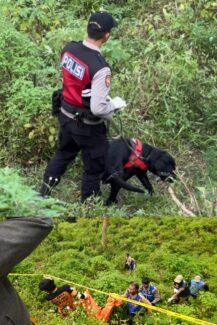 “Kondisi TKP sangat terjal. Setelah itu, kami terjunkan K9 anjing pelacakan umum jenis Labrador dari Unit Polsatwa Ditsamapta Polda Jatim,” terang Iptu Suyanto.