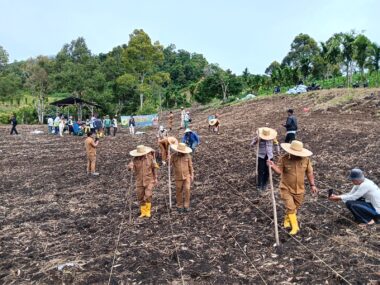 BUMDes Desa Tinada, Kecamatan Tinada melaksanakan penanaman jagung perdana hari ini (01/09/2025). Kepala Dinas Pemberdayaan Masyarakat Desa, Pemerintah Desa, Perlindungan Perempuan dN Anak dan Keluarga Berencana Pakpak Bharat, Robincen Habeahan, SIP, MM menjelaskan, kegiatan ini merupakan langkah nyata dalam mendukung program ketahanan pangan nasional yang dilakukan desa.