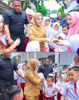 Bupati Labuhan Batu, dr. Hj. Maya Hasmita didampingi Plt. Kepala Dinas Pendidikan Abdi Jaya Pohan memantau langsung cek kesehatan gratis yang diselenggarakan Puskesmas Kota Rantauprapat di SDN 10, Kecamatan Rantau Utara.