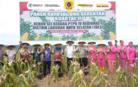 Panen raya tersebut mencakup lahan seluas lima hektare dan menghasilkan sekitar 20 ton jagung. Acara ini turut dihadiri Kapolres Labusel AKBP Aditya SP Sembiring, Manajer PTPN IV Regional 1 Yuda Iskandar, Asisten Perekonomian Ir. Ralikul Rahman, sejumlah kepala dinas, pejabat daerah, serta undangan lainnya yang turut hadir hal itu membuktikan keseriusan pemerintah daerah dalam mendukung ke tahanan pangan nasional.