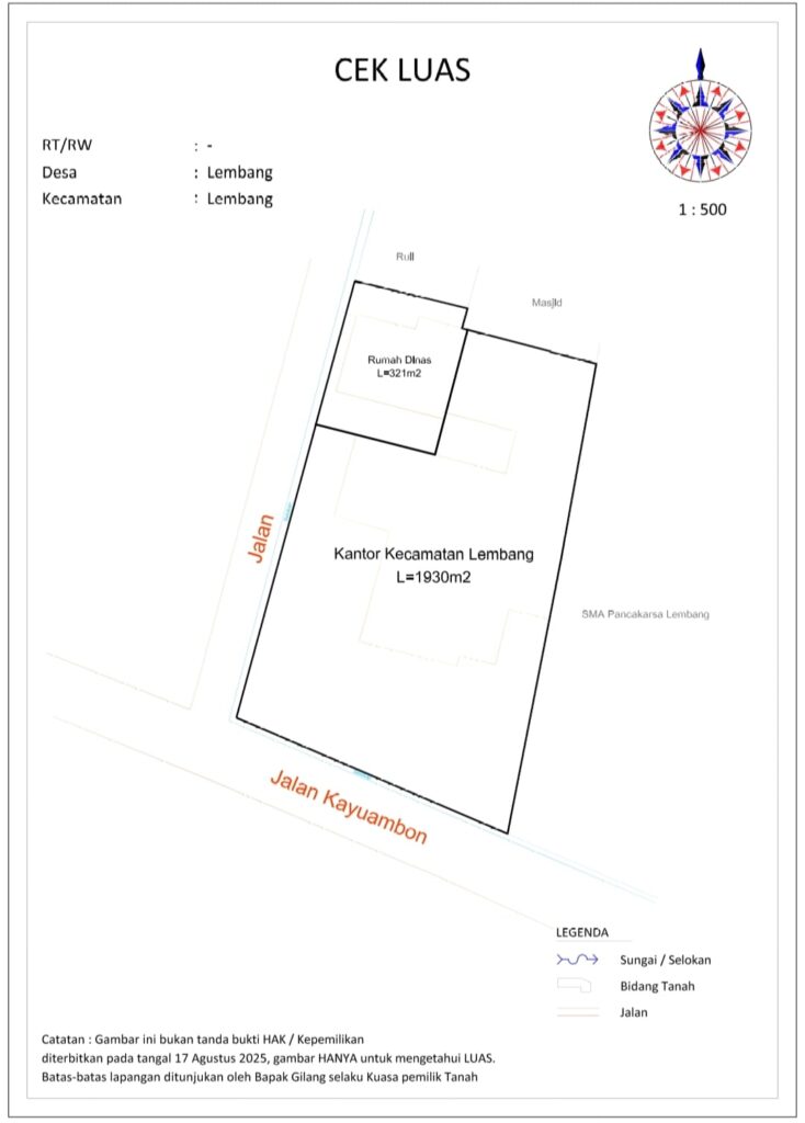 Jadi, indikasi KEJANGGALAN sudah terungkap, PERBEDAAN antara luas lahan Kantor Kecamatan Lembang berdasarkan gambar ukur yang diterbitkan oleh ATR/ BPN KBB tertanggal 17 Agustus 2025 sangat jauh berbeda luasnya dengan berdasarkan surat perjanjian sewa pada tahun 2023 dan tahun sebelumnya.