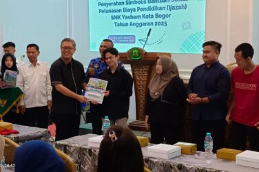 DPRD Kota Bogor bersama Pemerintah Kota Bogor menyalurkan bantuan pendidikan melalui program tebus ijazah. Kegiatan berlangsung di Aula SMK YASBAM, Kecamatan Bogor Selatan, Rabu (17/9/2024).