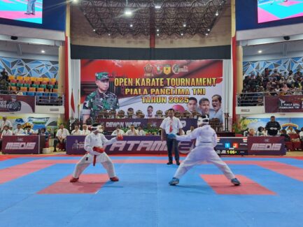 Open Karate Tournament Piala Panglima TNI 2025 yang digelar di BSCC Dome Balikpapan memasuki hari kedua, Sabtu (20/9/2025). Atmosfer kompetisi semakin sengit dengan ribuan karateka dari berbagai daerah di Indonesia saling menunjukkan kemampuan terbaik untuk mengharumkan nama kontingen masing-masing.