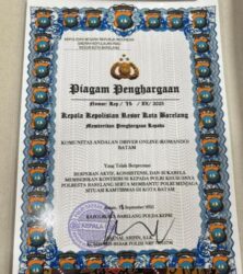 Polresta Barelang melaksanakan apel pagi rutin yang dirangkaikan dengan pemberian penghargaan kepada sejumlah elemen masyarakat, bertempat di Aula Anindhita Polresta Barelang. Kegiatan ini dipimpin langsung oleh Kapolresta Barelang, Kombes Pol Zaenal Arifin, S.I.K., dengan dihadiri Pejabat Utama (PJU) Polresta Barelang, personel jajaran, serta masyarakat penerima penghargaan. Rabu (17/9/2025)