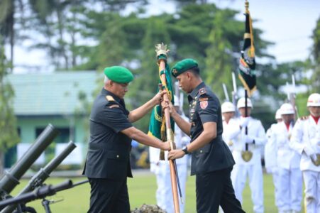 Kodam VI/Mulawarman menggelar upacara serah terima jabatan (Sertijab) sejumlah pejabat utama, penyerahan jabatan, serta tradisi penerimaan dan pelepasan warga Kodam VI/Mlw. Kegiatan ini dipimpin langsung oleh Pangdam VI/Mulawarman, Mayjen TNI Rudy Rachmat Nugraha, S.I.P., M.Sc., bertempat di Lapangan Upacara Mako Yonif 611/Awl, Kabupaten Kutai Kartanegara, Kamis (25/09/25).