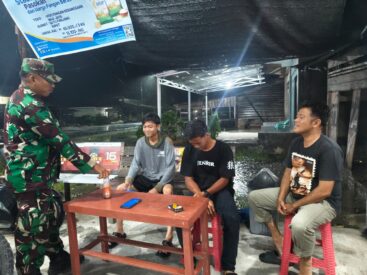 Patroli Mitigasi TNI, Ketua RT, Linmas, dan Pemuda Setempat Dalam Rangka Siskamling di Wilayah Koramil 04/Rupat, Kelurahan Batu Panjang
