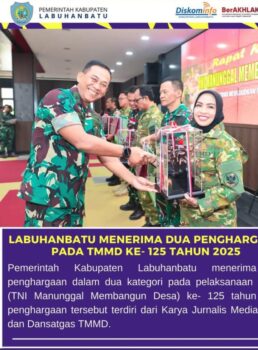 Pemerintah Kabupaten Labuhanbatu menerima dua penghargaan dalam dua kategori pada pelaksanaan TMMD (TNI Manunggal Membangun Desa) ke-125 tahun 2025. Penghargaan tersebut terdiri dari Karya Jurnalis Media Cetak dan Dansatgas TMMD.