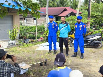 Personel Pos Polisi Air dan Udara (Pos Polairud) Polres Penajam Paser Utara (PPU) melaksanakan kegiatan gotong royong bersama masyarakat Desa Babulu Laut, Kecamatan Babulu, pada Jumat (5/9/2025).