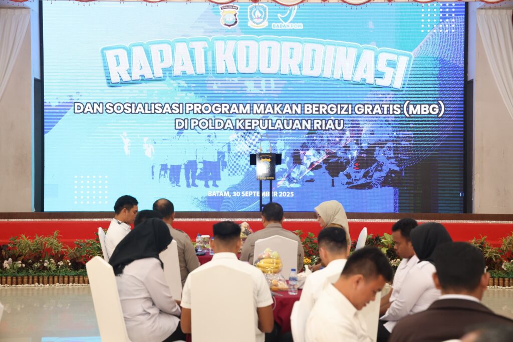 Polda Kepri menggelar Rapat Koordinasi sekaligus Sosialisasi Program Makanan Bergizi Gratis (MBG) yang berlangsung di Gedung Lancang Kuning, Batam, pada Selasa (30/9/2025). Rapat koordinasi ini bertujuan untuk menyamakan langkah dalam implementasi program MBG di wilayah Kepri.