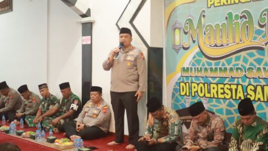 Kapolresta Samarinda, Kombes Pol Hendri Umar, S.I.K., M.H., menyampaikan bahwa peringatan Maulid Nabi menjadi momentum penting untuk memperkuat kebersamaan sekaligus meneladani akhlak Rasulullah SAW.