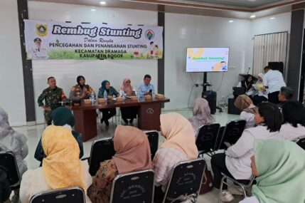 Polsek Dramaga bersama jajaran Forkopimcam menghadiri kegiatan Rembug Stunting di Aula Kantor Kecamatan Dramaga, Kabupaten Bogor, pada Kamis (11/9/2025), sebagai upaya pencegahan dan penanganan stunting di wilayah setempat.