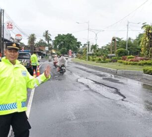 Polsek Kabat Imbau Pengendara Waspadai Jalan Berlubang di Jalan Jember