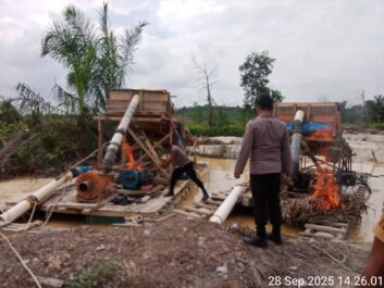 Kepolisian Sektor (Polsek) Kuantan Mudik Polres Kuantan Singingi melaksanakan penertiban terhadap aktivitas Penambangan Emas Tanpa Izin (PETI) di wilayah hukumnya. (28/9/2025)