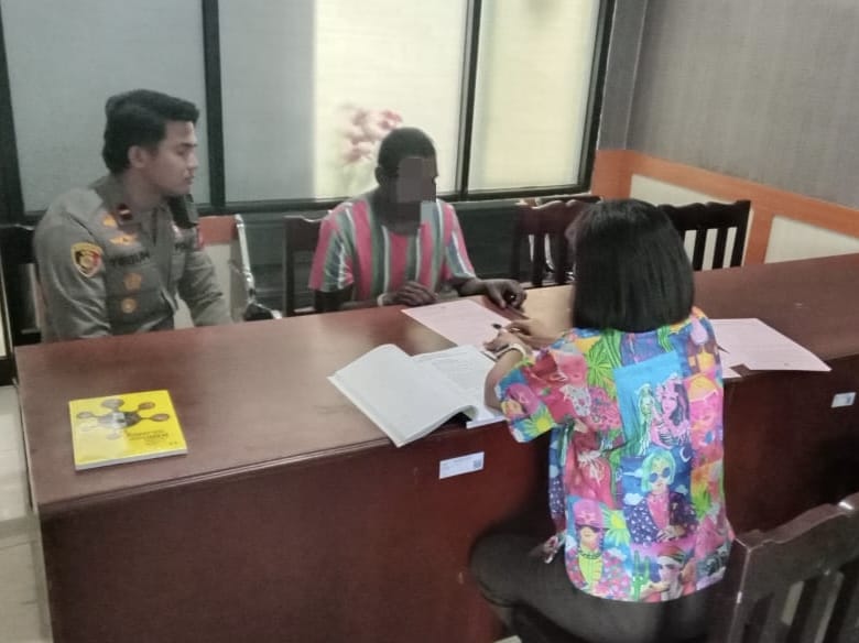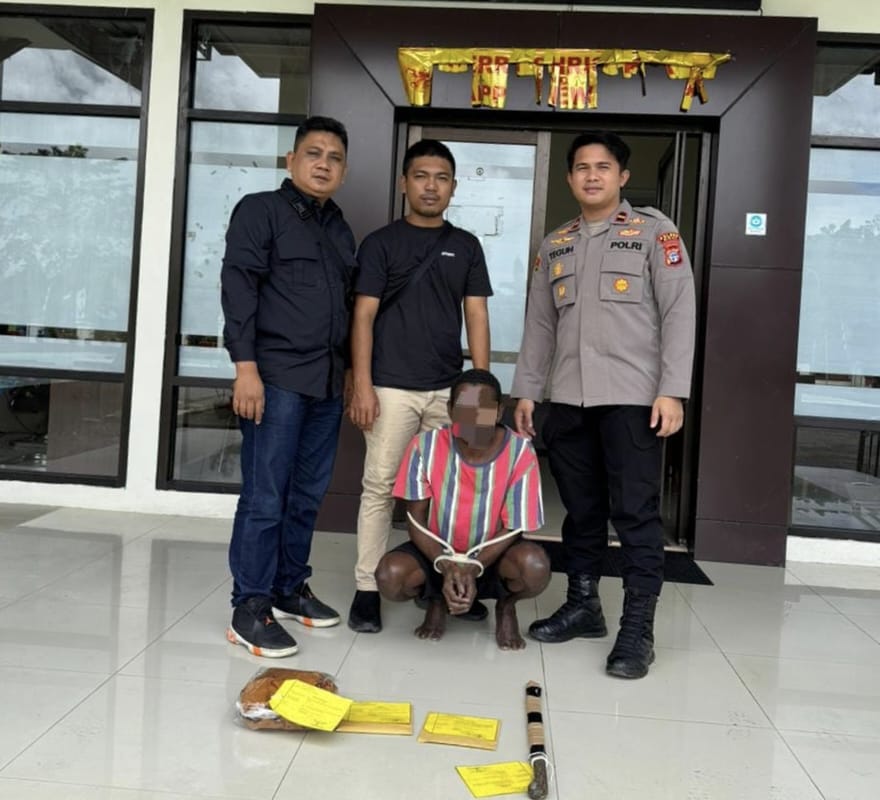 Kanit Reskrim Polsek Mimika Baru IPDA TEGUH KRISANDI FARDHA S.Tr.K, pimpin langsung proses penyerahan Tersangka YA alias Yonas disertai dengan Barang Bukti yang berhasil diamankan.