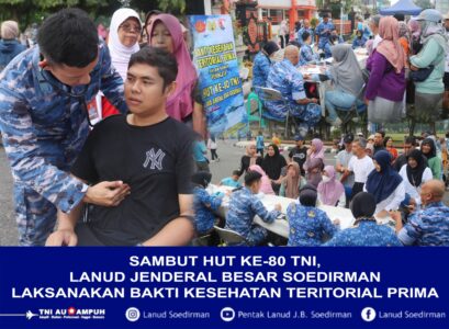 Lanud Jenderal Besar Soedirman melaksanakan kegiatan Bakti Kesehatan Teritorial Prima, Dalam rangka menyambut HUT ke-80 Tentara Nasional Indonesia (TNI), kegiatan tersebut dilaksanakan di lokasi Car Free Day (CFD) Alun-Alun Kabupaten Purbalingga, Minggu (21/09/2025).