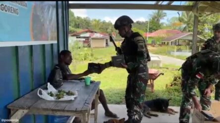 Satgas Pamtas Kewilayahan RI–PNG Yonif 763/SBA Pos Konja melaksanakan kegiatan pembinaan teritorial (Binter) dengan menyelenggarakan anjangsana ke rumah-rumah warga, membagikan Naraga, serta memberikan pelayanan pengobatan gratis kepada masyarakat Kampung Konja, Kabupaten Maybrat, pada Minggu (28/9/2025).