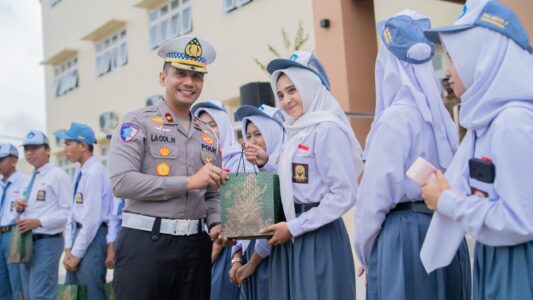 Dalam amanatnya, Kompol La Ode menekankan pentingnya disiplin dan kesadaran generasi muda dalam menjaga keselamatan di jalan raya.
