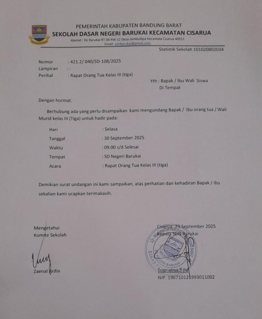 “Masukan dari orangtua biasanya kan ke pak komite dulu, di sini ada pak komite di samping saya. Kalau ada apa-apa ketika rapat juga kan, tolong sampaikan ke pak komite sebagai koordinator atau penyambung komunikasi antara orangtua dengan pihak sekolah, terkait mungkin ada beberapa kegiatan sekolah, sampai saat ini tidak ada kendala di SDN Barukai,” ujarnya, Kamis (25/9/2025).