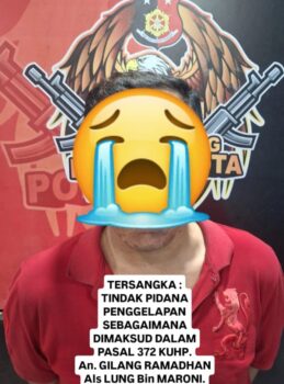 Saat ini, pelaku bersama barang bukti telah diamankan di Mako Polsek Samarinda Kota untuk diproses lebih lanjut. Polisi menjerat GR dengan Pasal 372 KUHP tentang tindak pidana penggelapan.