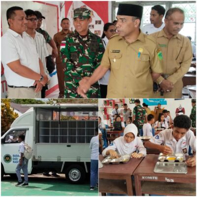 Wakil Walikota Tual, Amir Rumra didampingi Dandim 1503 Tual, Letkol Inf. Andi Agus Salim, Senin (07/09/2025) tinjau pembagian Makan Bergisi Gratis yang disalurkan Yayasan Garuda Maryadat (Garda).