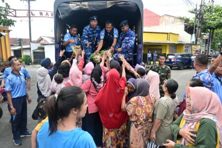 Komandan Lanud J.B. Soedirman Letkol Pnb Tatag Onne Setiawan, S.I.P., M.Han., memimpin langsung kegiatan pembagian sayuran. Ratusan paket sayuran dibagikan kepada tukang becak dan masyarakat yang membutuhkan.