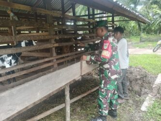 Pada hari Kamis (30/10/2025) pukul 09.00 WIB sampai dengan selesai, Sertu Polarianto Hutapea bersama Bapak Pardi, selaku pemilik ternak, melaksanakan kegiatan pemantauan penyakit mulut dan kuku (PMK) pada hewan ternak di Desa Pangkalan Nyirih, Kecamatan Rupat, Kabupaten Bengkalis.