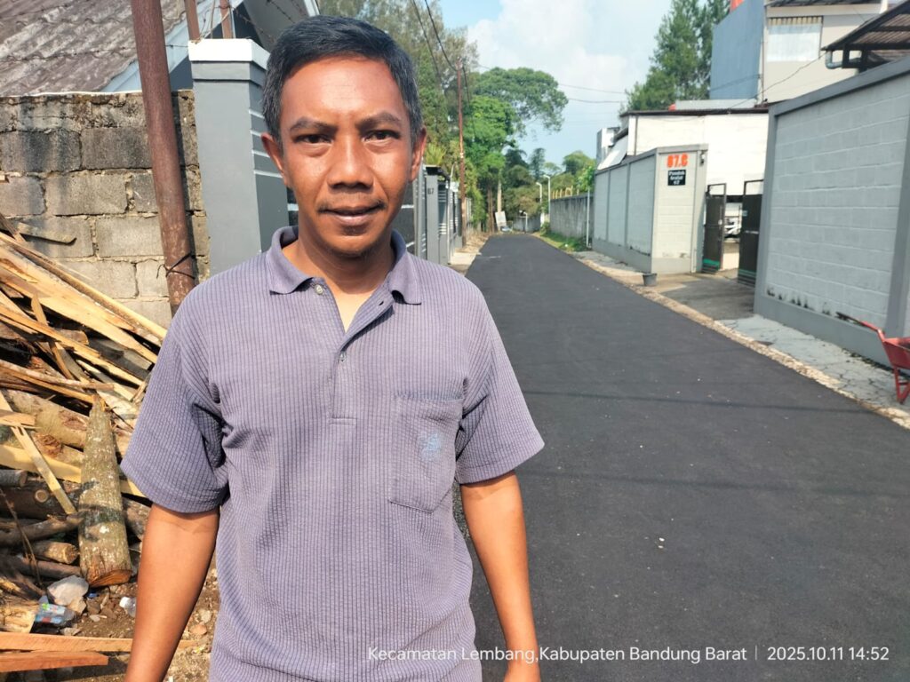 Warga menargetkan, pelaksanaan pekerjaan aspal jalan Desa di Kampung Sukaampat RT 03 – 04 RW 01, Desa Kayuambon, Kecamatan Lembang, KBB rampung sampai dengan jadwal yang telah ditentukan. (DRIV).