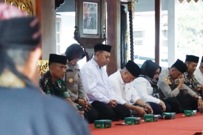 Banyumas, – Pemerintah Kabupaten Banyumas (Pemkab) menggelar acara Doa Kebangsaan Bersama Forkopimda Sabtu (18/10) di Pendopo Si Panji Purwokerto. Kegiatan bertujuan untuk meneguhkan kembali semangat persatuan dan kesatuan dalam kehidupan berbangsa dan bernegara, khususnya di Kabupaten Banyumas. Hadir dalam kegiatan Bupati Banyumas Sadewo Tri Lastiono, Wakil Bupati Banyumas Dwi Asih Lintarti, jajaran Forkopimda, perwakilan ormas, LSM, rektor perguruan tinggi, tokoh agama dan tokoh masyarakat, serta yang lainnya.