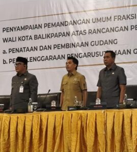 DPRD Kota Balikpapan menggelar Rapat Paripurna ke-3 Masa Sidang I Tahun Sidang 2025/2026 dengan agenda penyampaian pemandangan umum fraksi-fraksi terhadap Nota Penjelasan Wali Kota Balikpapan mengenai dua Rancangan Peraturan Daerah (Raperda) strategis, yakni Penataan dan Pembinaan Gudang serta Penyelenggaraan Pengarusutamaan Gender (PUG).