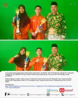 “Alhamdulillah, hari ini siswa-siswi kita menerima penghargaan di tingkat kabupaten. Prestasi ini merupakan hasil kerja keras, ketekunan, dan semangat juang yang tinggi dari para peserta didik, serta bimbingan guru dan dukungan seluruh keluarga besar madrasah. Semoga menjadi inspirasi bagi siswa lainnya untuk terus berprestasi dan menjunjung tinggi akhlakul karimah,” ujarnya.