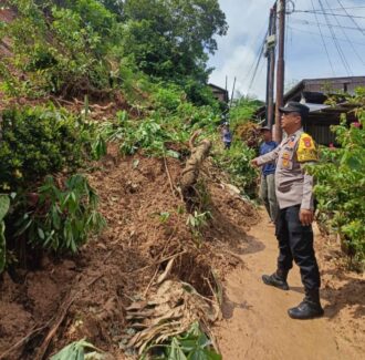 Akibat hujan deras yang mengguyur wilayah Kota Samarinda, terjadi tanah longsor di Jalan Batu Cermin RT 06 Kelurahan Sempaja Utara, Kecamatan Samarinda Utara, pada Kamis (23/10). Menyikapi kejadian tersebut, Bhabinkamtibmas Kelurahan Sempaja Utara Polsek Sungai Pinang, Aipda Lamsihar Sinaga, segera turun ke lokasi untuk melakukan monitoring dan memastikan kondisi keselamatan warga.