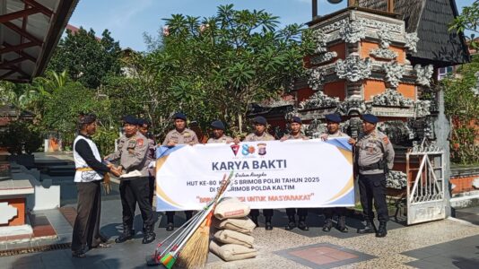Dalam rangka memperingati Hari Ulang Tahun Korps Brimob Polri Ke-80 tahun 2025, personel Batalyon A Pelopor Satuan Brimob Polda Kaltim melaksanakan kegiatan karya bakti di Pura Giri Jaya Natha, yang berlokasi di Jalan R.E. Martadinata, Balikpapan, pada Selasa (28/10/2025).