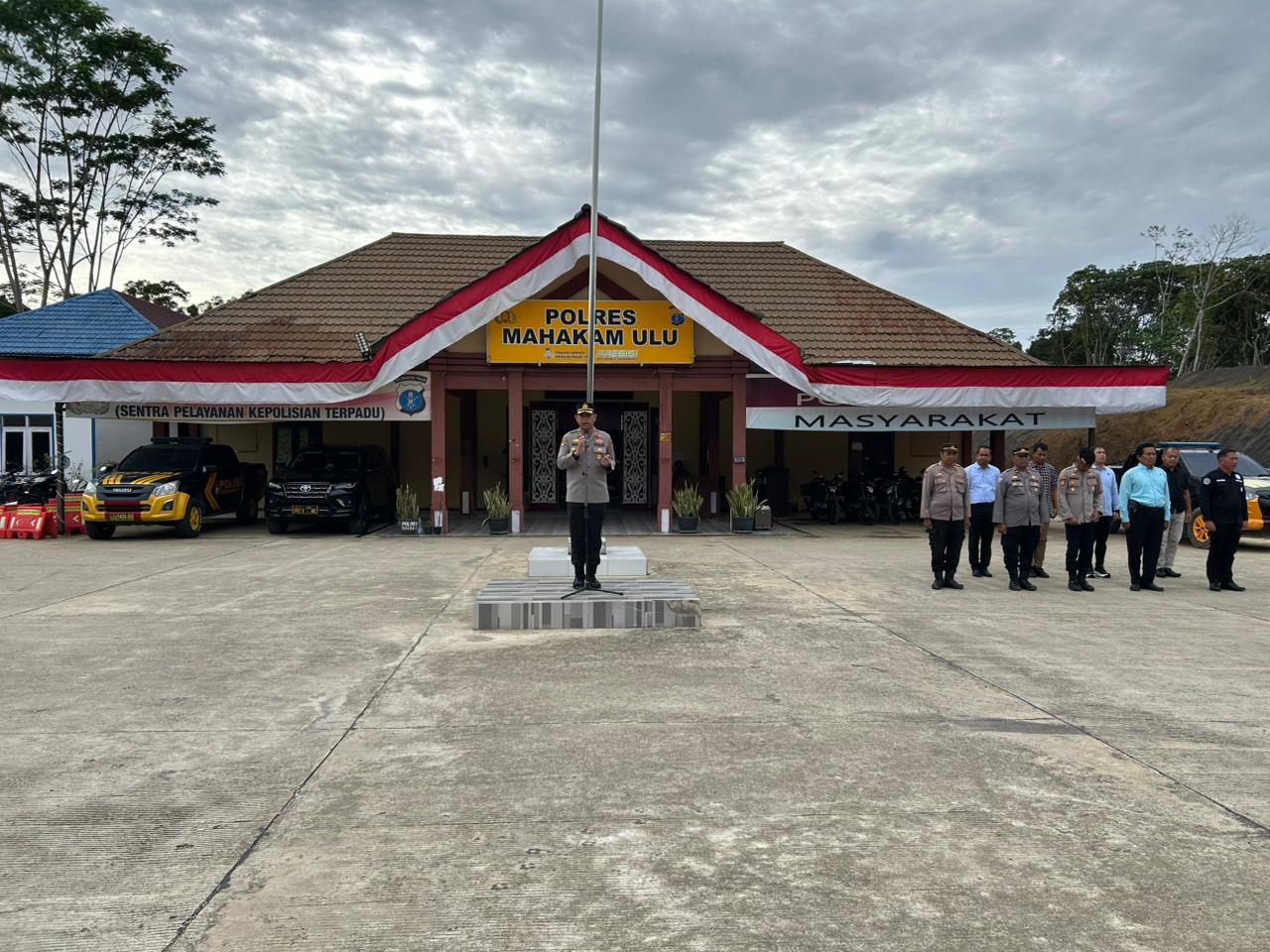 Kapolres Mahakam Ulu, AKBP Eko Alamsyah, A.Md., S.H., M.H., memimpin apel pagi personel di halaman Mapolres Mahakam Ulu, Senin (7/10/2025).