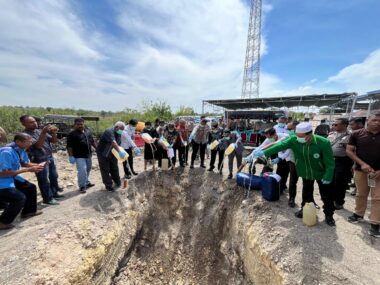 Kapolres TTS dan Forkopimda Musnah 3,1 Ton Miras Oplosan Jenis Sopi Di Helipet Polres TTS.