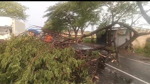 Lamongan Diterpa Cuaca Ekstrem: Hujan Es, Angin Kencang menimbulkan puluhan pohon tumbang ke jalan raya