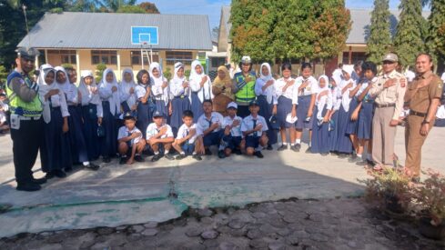 Polisi lalulintas (Polantas) Menyapa, Satuan Lalu lintas (Sat Lantas) Polres Pematangsiantar melalui Kanit Kamsel IPDA Serly Tarigan bersama personil Unit Kamsel menggelar kegiatan Police Go School di SMP Negeri 9 Jalan Medan km.4,5 Kelurahan Sumber Jaya Kecamatan Siantar Martoba Kota Pematangsiantar, pada Senin 27 Oktober 2025 pagi sekira pukul : 07.30 Wib.