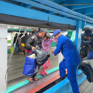 Selain melakukan pemantauan situasi kamtibmas di area dermaga, personel Sat Polairud juga turut memberikan bantuan kepada para penumpang kapal yang baru tiba, membantu proses penurunan barang bawaan, serta mengarahkan penumpang agar tetap tertib dan aman selama kegiatan bongkar muat berlangsung.