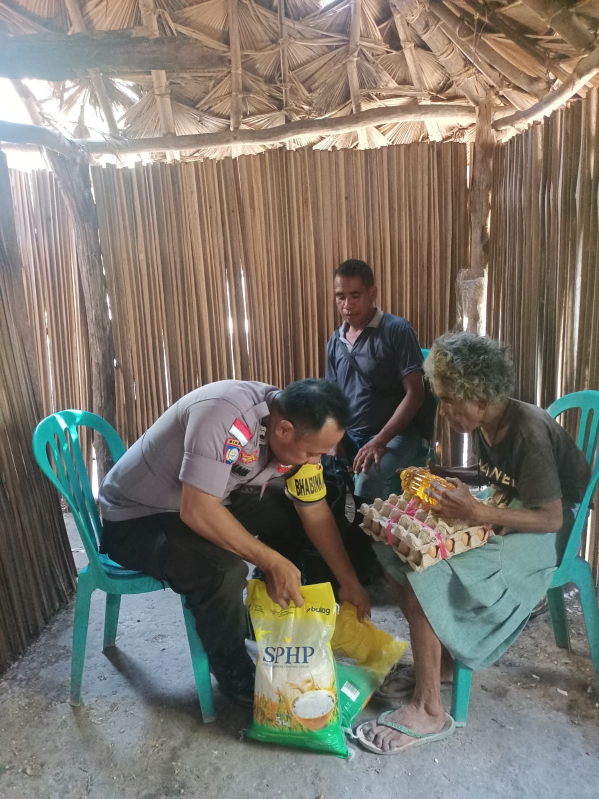 Seorang nenek lansia paru baya Marlince Benu (84) warga Rt 017 Rw 006 Desa Hoibeti Kecamatan Kot,olin Kab TTS akhirnya di tolong anggota Bhabinkamtibmas Polsek KiE Aiptu Ady Samadara Sabtu 04 Oktober 2025 sekira pukul 09:30 Wita tadi pagi sebagai upaya kepedulian kasih Polri dalam membantu masyarakat tidak lepas dari peran Bhabinkamtibmas dalam menjalankan peran sebagai garda terdepan dalam membantu dan peduli terhadap sesama.