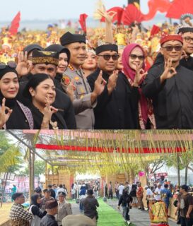 Ribuan langkah penari Gandrung menghiasi tepian Pantai Marina Boom, menari serempak dalam irama budaya dan kebanggaan warga Banyuwangi.
