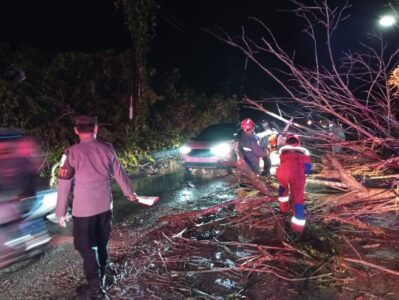 “Proses penanganan berlangsung cukup menantang karena kondisi jalan gelap dan ukuran batang pohon yang besar. Namun berkat kerja sama dan semangat gotong royong antara Polri, Damkar, dan masyarakat, seluruh batang pohon berhasil dipotong dan disingkirkan sekitar pukul 01.30 WITA,” jelasnya.