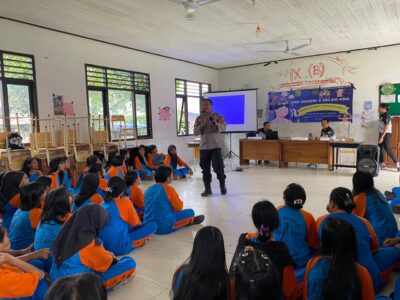 Dalam upaya meningkatkan kesadaran dan disiplin masyarakat, khususnya di kalangan pelajar, personel Polsek Barong Tongkok melalui P.s. Kanit Binmas Aipda Desti Ambarura melaksanakan kegiatan sosialisasi tertib berlalu lintas di SMPN 3 Geleo Asa pada Jumat (24/10/2025).