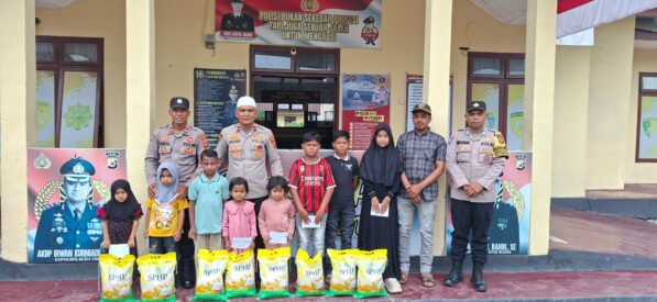 Kapolsek Pantee Bidari, Ipda Saiful Bahri, S.E., bersama personel Polsek dan Sekretaris Desa Meunasah Tunong, menyerahkan bantuan kepada delapan anak yatim dan dua fakir miskin. Bantuan yang diberikan berupa satu karung beras SPHP ukuran 5 Kg serta santunan uang tunai untuk masing-masing penerima.