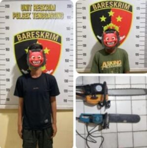 Kedua pelaku mengaku telah menjual hasil curiannya di kawasan Kelurahan Mangkurawang. Petugas yang menelusuri keterangan tersebut akhirnya berhasil menemukan kembali kedua unit chainsaw yang menjadi barang bukti.