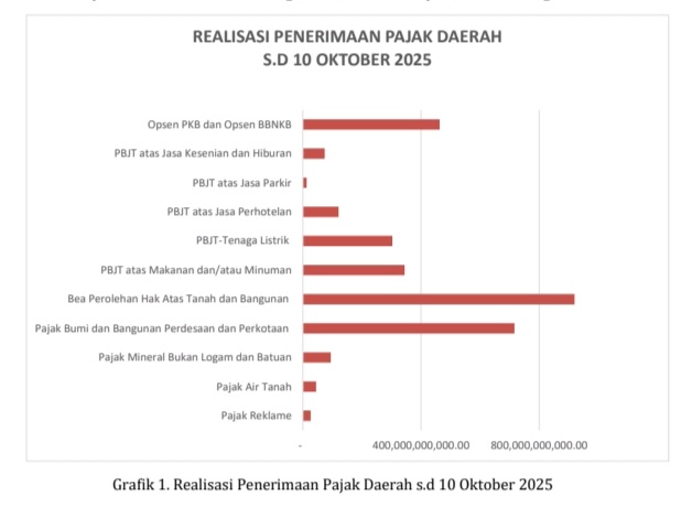 Capaian Penerimaan Pajak Daerah s.d 10 Oktober 2025